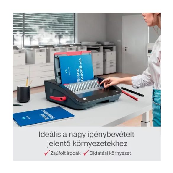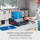 A CombBind C210E ideális a közepes spirálozási igényekkel rendelkező, átlagos méretű irodákhoz. Az elektromos papírlyukasztás még könnyebbé teszi a munkafolyamatot, míg a pontosságot az egyedi GuideRight igazítóeszköz biztosítja. A 20 lapos (80 g-os) lyukasztási teljesítményt 450 lapos (51 mm-es spirál) spirálozási kapacitással kombinálja. Alkalmas A3 álló, valamint A4-es és A5 lapméretek kezelésére.