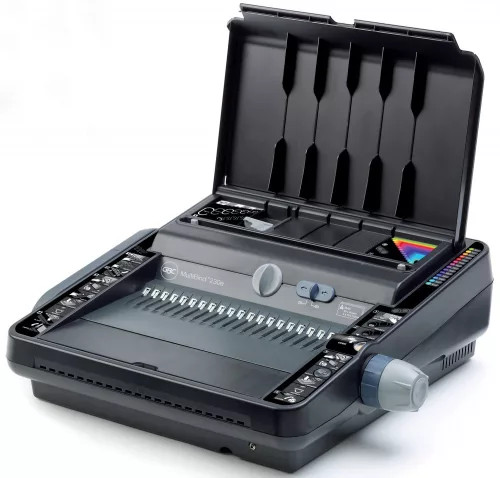 A mindennapos irodai használatra tervezett, műanyag és 21 lyukas fémspirálozásra is alkalmas MultiBind 230E gépet a Flowline Pro rendszerrel szereltük fel, amely papírszétválasztó és automatikus középre igazítás funkcióval segíti a spirálozás folyamatát. A MultiBind 230E spirálozógép mindig kiváló eredményt biztosít.
