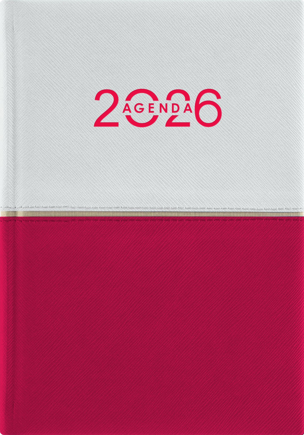 Két harmonizáló színű, bőrhatású anyag egyedi összeillesztésével, gyönyörű varrással készült agendák nagy méret-és színválasztékban.