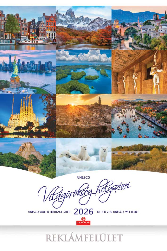 -naptár rész: magyar, angol, német nyelven, magyar ünnepek feltüntetésével
