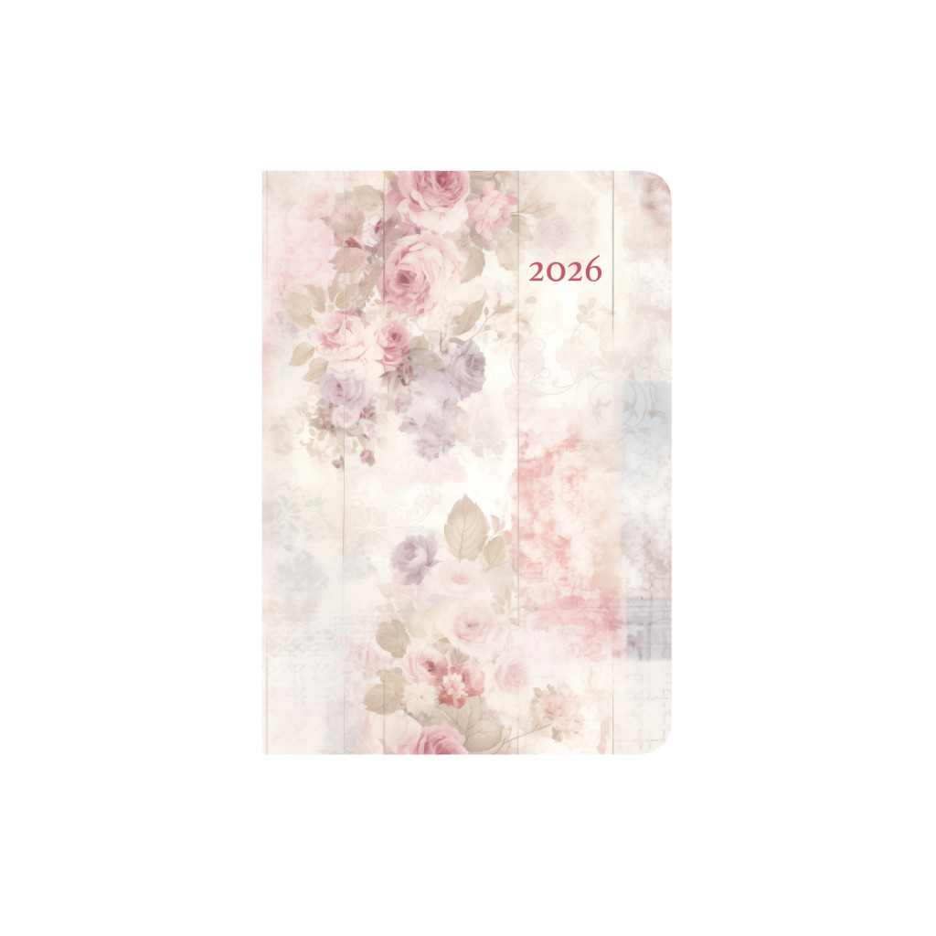 Többféle grafikával díszített, puha borítós, fényes fóliával bevont,fehér tömbös heti naptár.