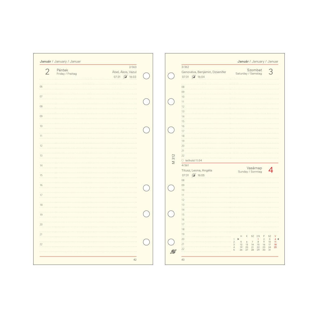 éves áttekintő, havi és napi tervező, info oldalak
