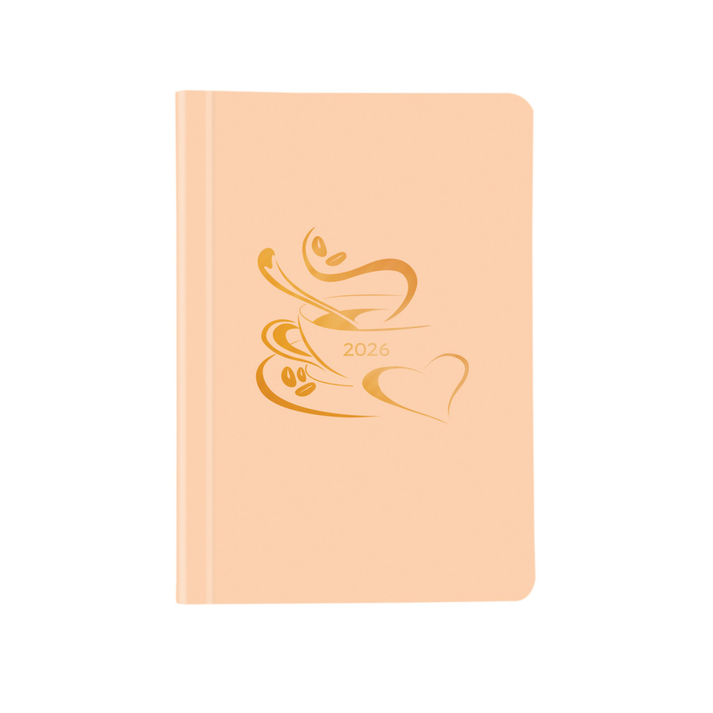 Matt fóliával bevont, papírborítós, fehér tömbös heti naptár, évszámmal, jelzőszalaggal és sarokperforációval.