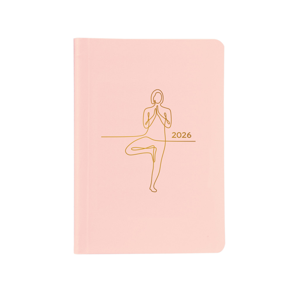 Matt fóliával bevont, papírborítós, fehér tömbös heti naptár, évszámmal, jelzőszalaggal és sarokperforációval.