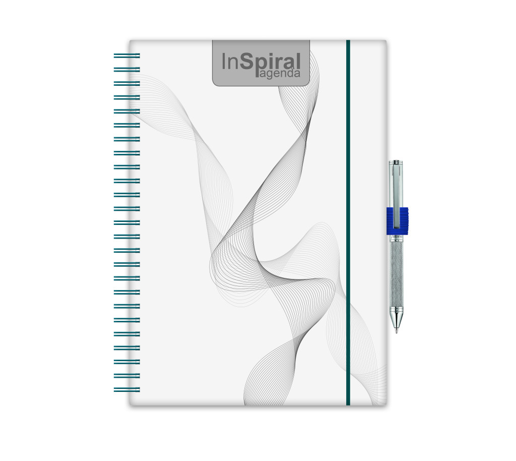 Finom tapintású Soft touch fóliával és UV formalakkal készült agendák, spirálos kivitelben. A tolltartó és az elasztikus zárószalag hasznos részei a terméknek.